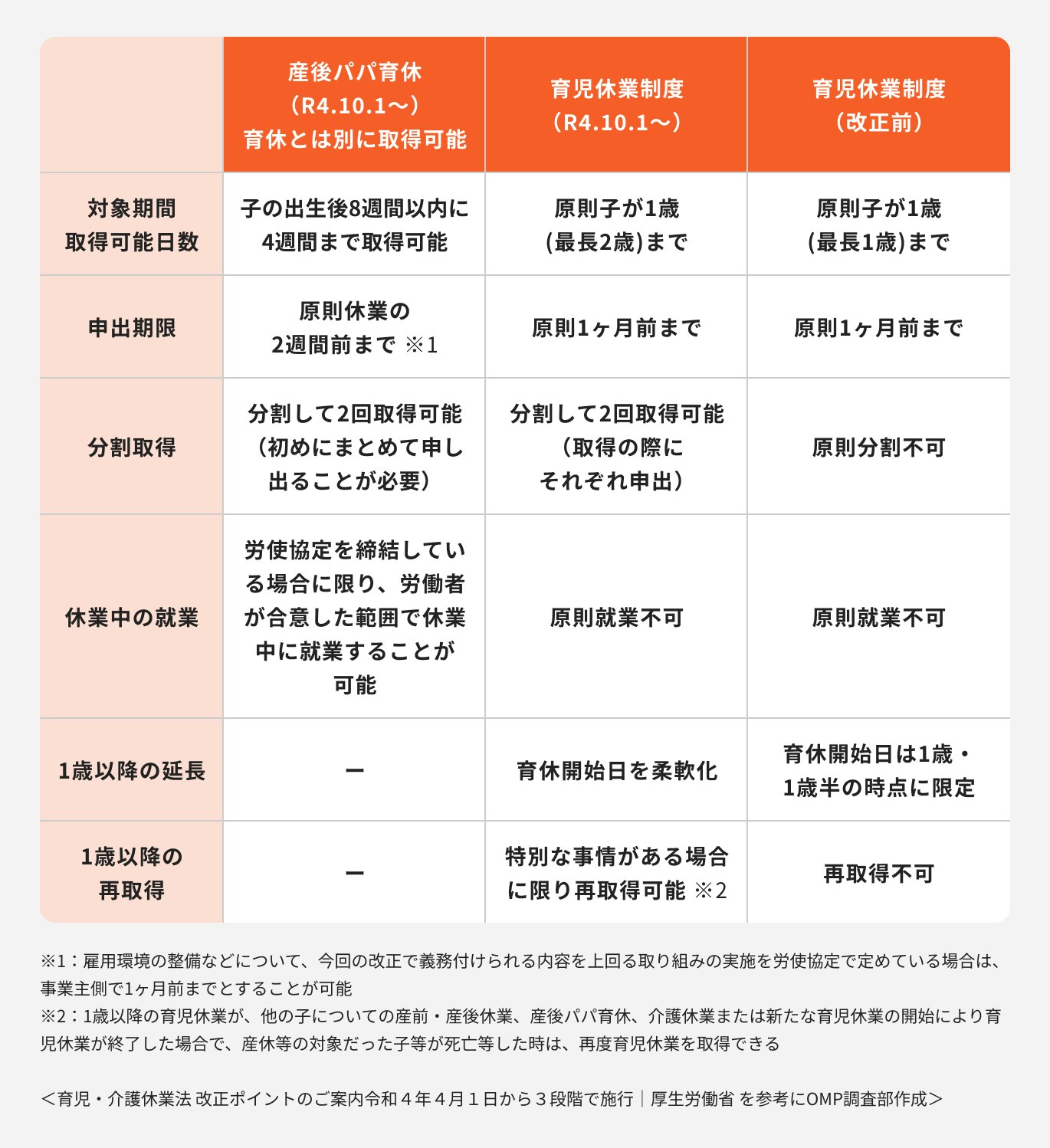 現行の育児休業制度との比較は以下のとおりです。
