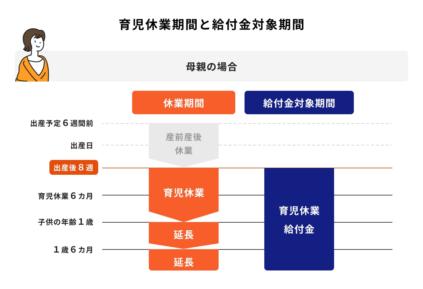 母親の場合:産後8週間後から子どもが1歳になる日の前日まで