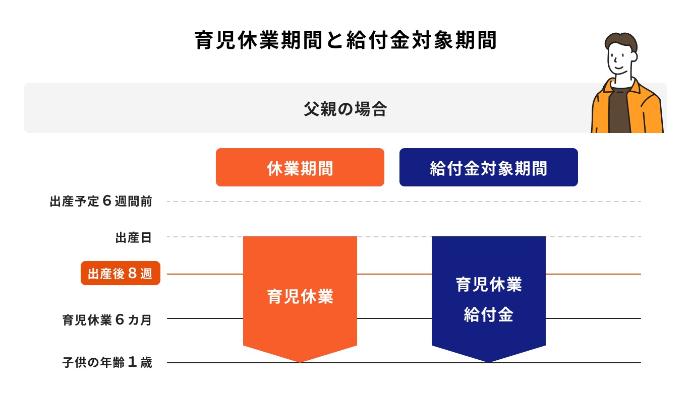 父親の場合:子どもの出生当日から1歳になる日の前日まで