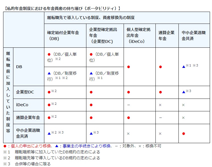 企業年金やiDeCoの間で資産を移換することを「ポータビリティ」と呼びます。