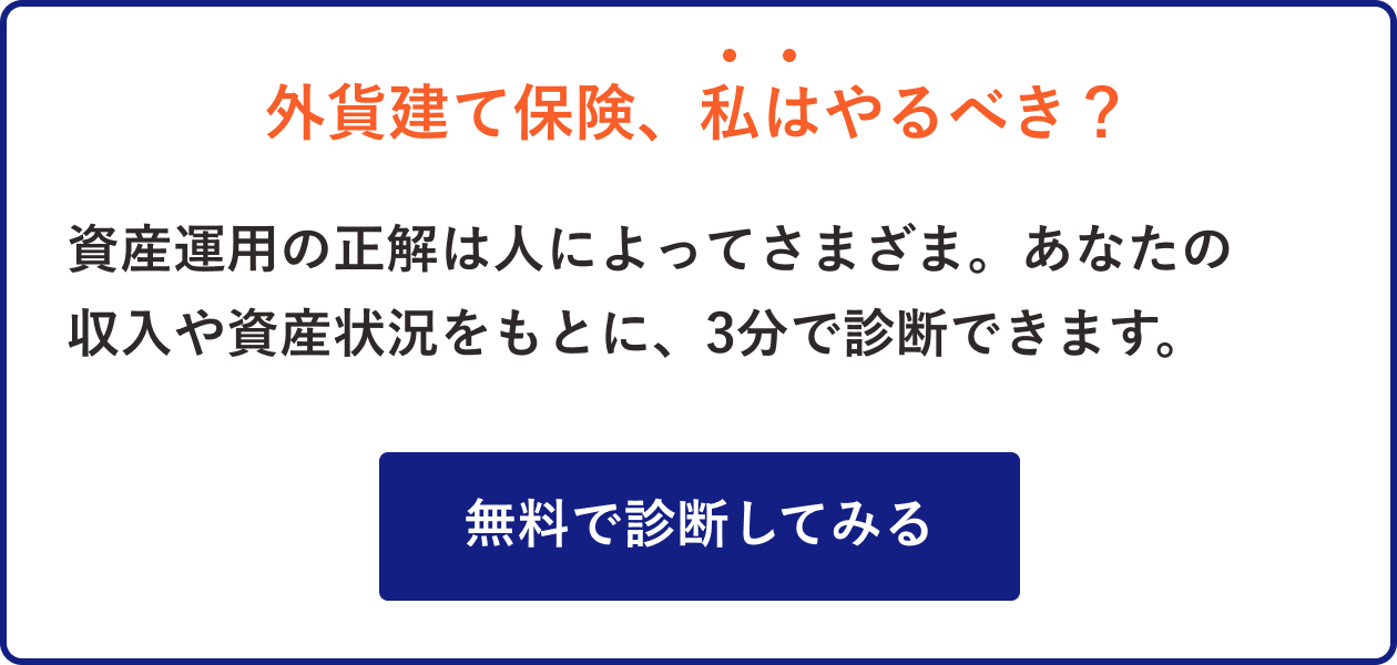 場合によっては、他の商品が合致する場合もあるので、外貨建て保険は手段のひとつとして検討してみると良いでしょう。